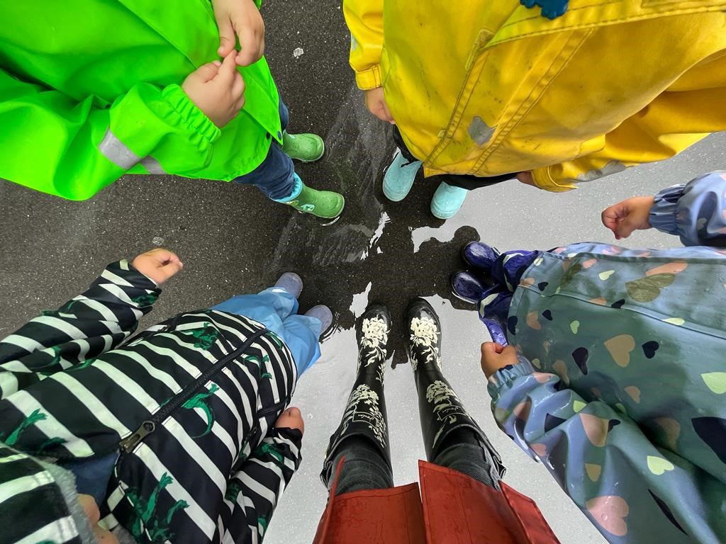 Die Babygruppe kommt aus dem Staunen nicht mehr raus: Da ist der Wald im Naherholungsgebiet Allmend plötzlich bunt. Informationstafeln verraten, welche Tiere hier leben. Und auf der nahen Baustelle wird fleissig gearbeitet. Beim Spazieren gibt es so einiges zu...